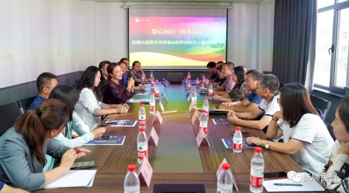On September 7, the Fushun Democratic League Education Sector Grassroots Organisation College Study Research and Exchange Conference was held in our school. Yu Man, full-time deputy chairman of the Fushun Municipal Committee of the Democratic League, led 15 alliance members of 5 universities including Liaoning University of Petroleum and Chemical Technology to the school for inspection and exchange. Hu Xiaomei, Secretary of the Party Committee, met with Yu Man and his entourage. Bai Jing, member of the Party Committee and head of the Organisation Department, attended the symposium. Hou Chunming, chairman of the Shengong Branch of the Democratic League and vice president of the School of Mechanical Engineering and Automation, presided over the symposium.