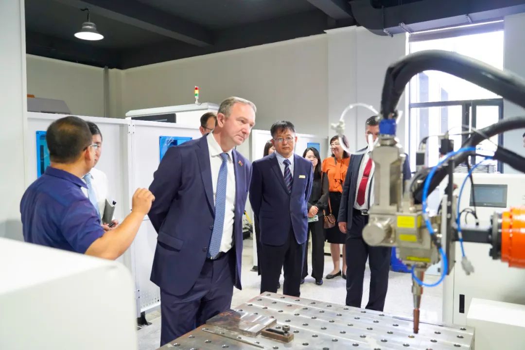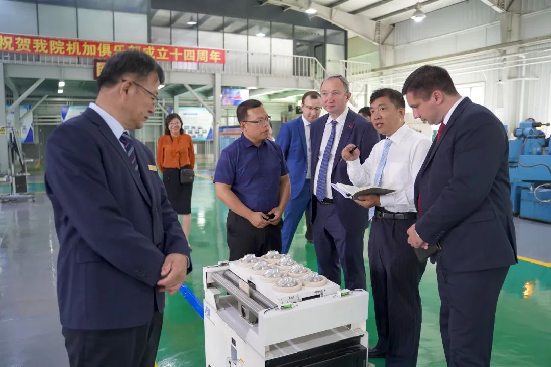 会前,谢尔盖·瓦西里耶维奇·哈里顿契克一行参观了我校智能制造实训中心、机器人实训基地、汽车实训中心和中国-白俄罗斯机械零件硬化、修复和保护创新中心。我校机械工程与自动化学院院长赵元、科技处处长刘业峰、俄乌白合作交流中心主任王丽君参加座谈交流。