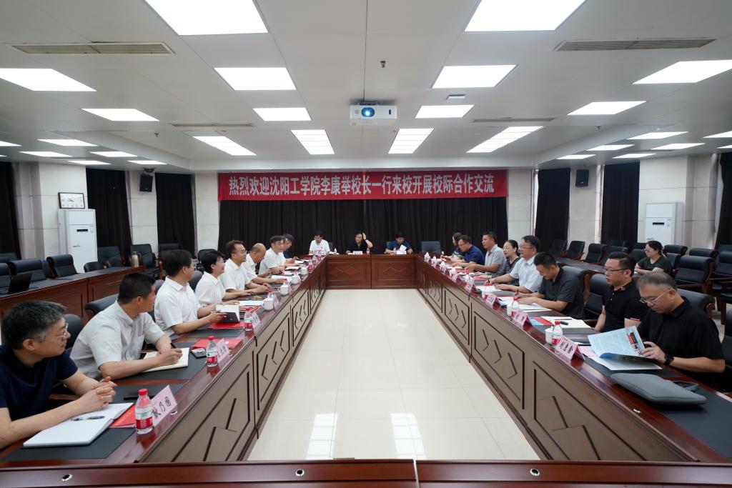 7月21日,校长李康举,副校长邵玉、公丕国一行赴沈阳理工大学就全面推动开放办学、开展校校合作进行调研,沈阳理工大学党委副书记、校长宁先圣,副校长王宝令、冯永新、舒启林接待了李康举一行。