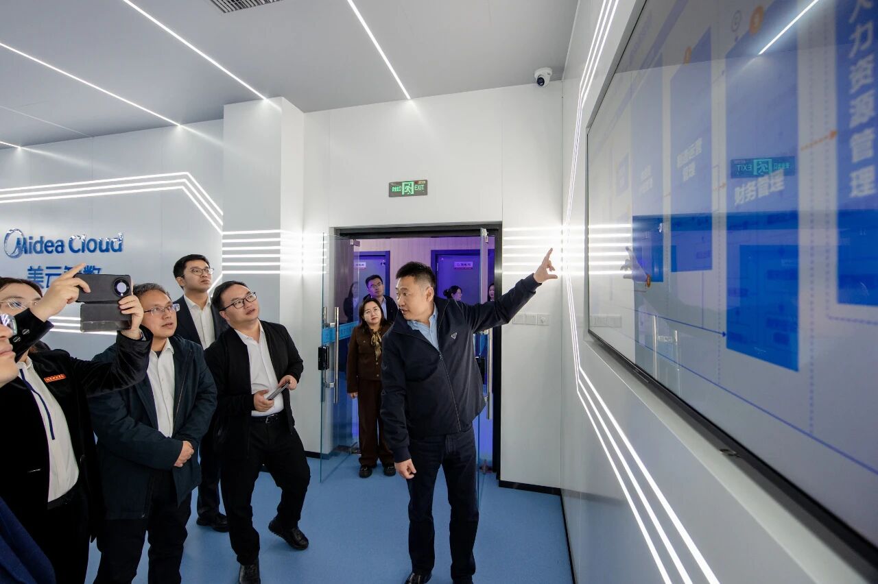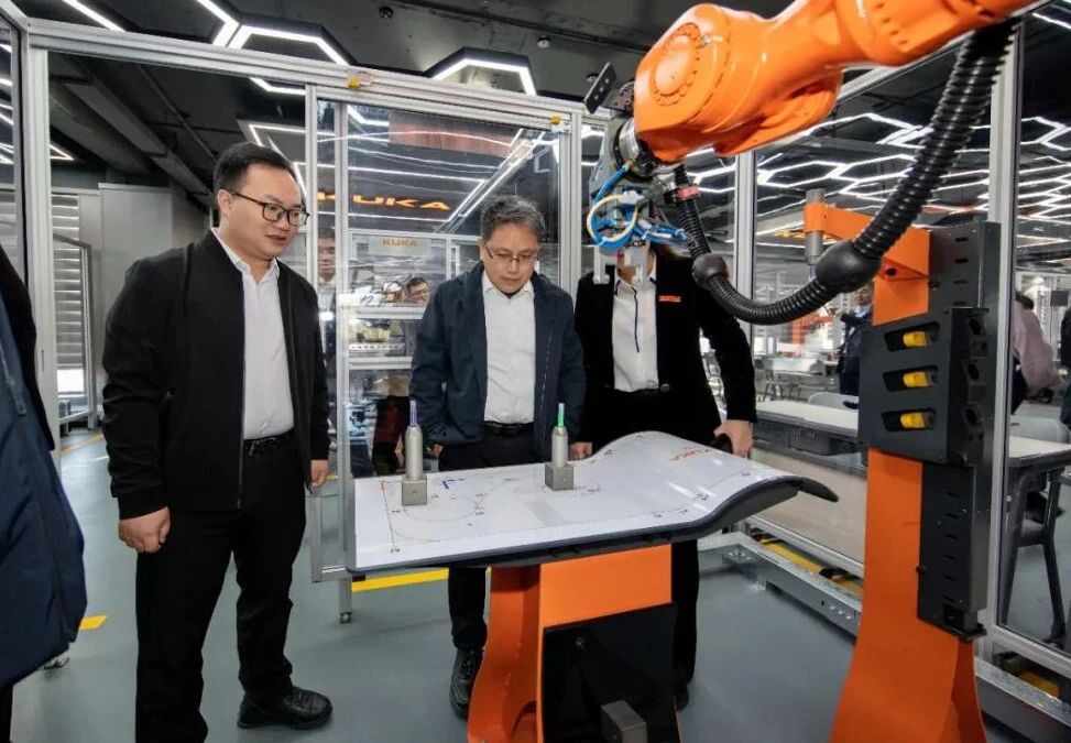座谈会前,胡剑锋一行参观了我校华为-沈工现代产业学院、沈工-美的数字灯塔学院及库卡授权工业机器人学院。信息与控制学院院长张珠华通过现场微课,展示了学校在智能制造与人工智能领域的教学探索与实践成果。