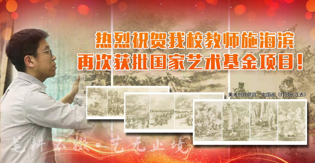 近日,国家艺术基金管理中心发布2022年度资助项目立项名单,我校艺术与传媒学院副院长施海滨申报的美术创作资助项目《辉煌的胜利·打过长江去——庆祝中国共产党成立百年大型中国画组画创作》获批立项。这是施海滨继中国画作品《中国故事—丝路今延》获批...