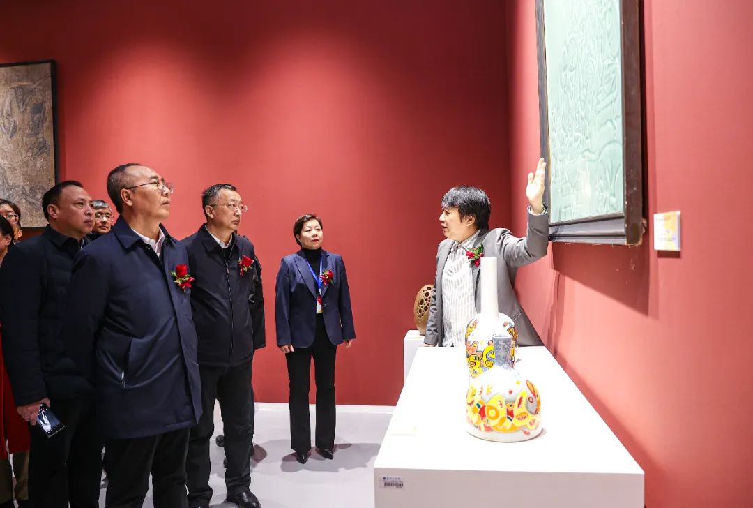 11月21日,“北方瓷韵”辽宁省第二届中青年陶瓷艺术家作品抚顺大官窑邀请展在辽宁美术馆开展。展览由辽宁省文化和旅游厅、辽宁省文学艺术界联合会指导,中共抚顺市委宣传部主办,辽宁美术馆(辽宁画院)、沈阳工学院、抚顺大官窑陶瓷文创园承办,展览将展出至11月28日。展览吸引了众多人前来观展,营造出浓厚的陶瓷艺术氛围,为辽宁打好打赢攻坚之年攻坚之战提供强大的文艺力量。省委宣传部副部长杨利景,省文旅厅党组成员、副厅长张睿,省文联党组成员、副主席林喦,省公共文化服务中心副主任刘凤满,抚顺市委常委、宣传部部长肖明江,校党委书记胡晓梅出席展览开幕式。