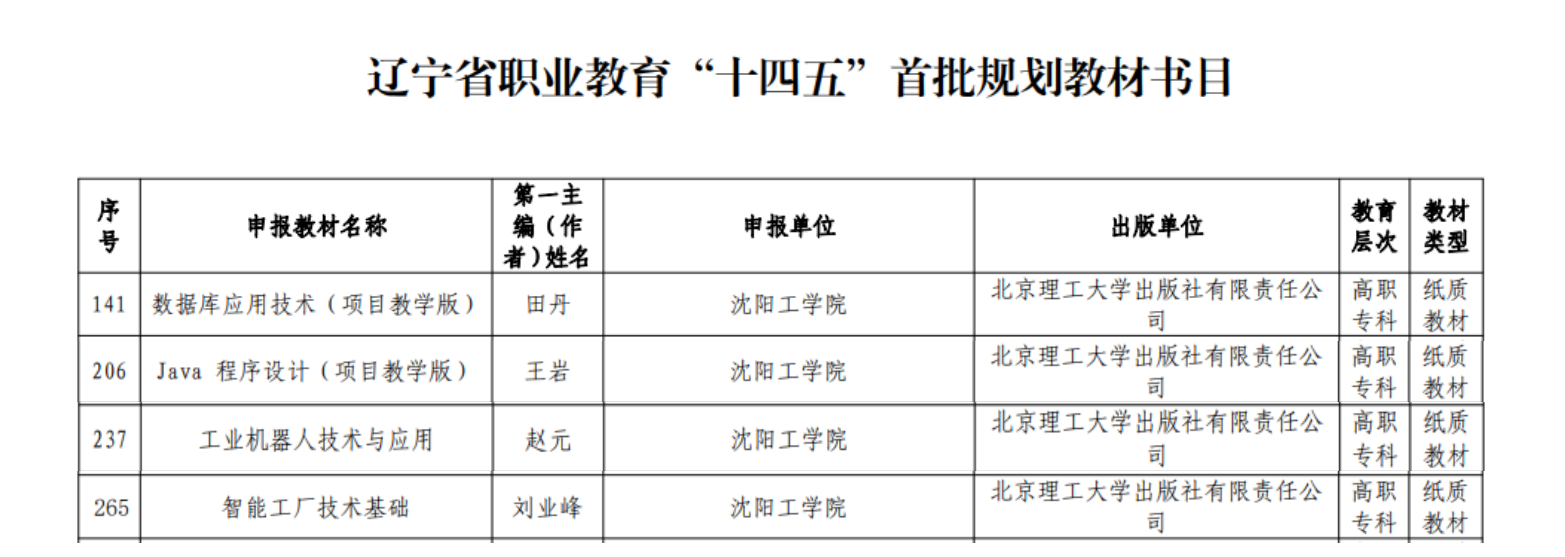 3月16日,辽宁省教育厅印发《辽宁省教育厅办公室关于公布辽宁省职业教育“十四五”首批规划教材书目的通知》(辽教办〔2022〕71号),我校教师田丹、王岩、赵元、刘业峰分别主编的4部教材入选《辽宁省职业教育“十四五”首批规划教材书目》。我校始终高度...